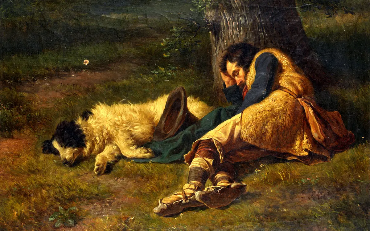 Filippo Palizzi, Pastore che dorme col suo cane, XIX secolo. Pubblico dominio