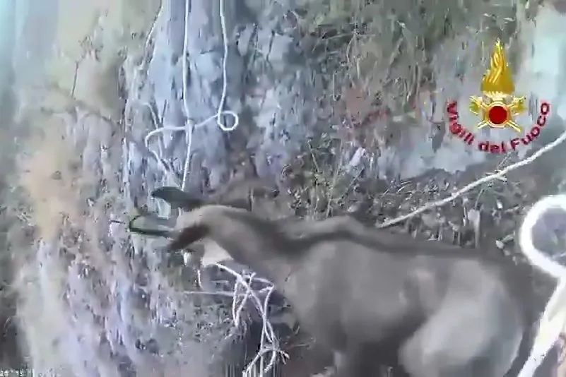 Camoscio bloccato su parete rocciosa vicino Verona, il salvataggio dei Vigili del Fuoco
