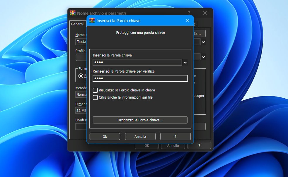 Naturalmente, nel caso in cui questa cartella compressa verrà inviata ad un’altra persona (magari via mail), il destinatario dovrà comunque inserire la parola chiave per poter accedere al file.