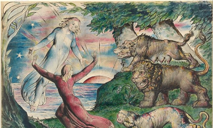 William Blake, Dante fugge dalle tre belve, 1824. Public Domain