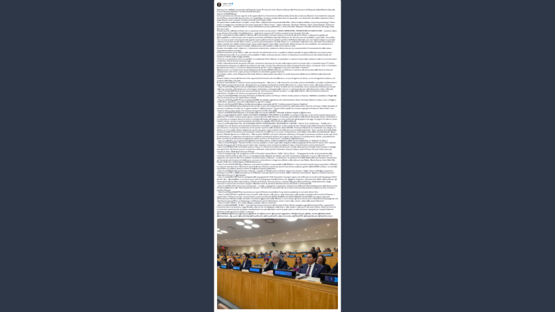 Il senatore Giulio Terzi ha scritto ieri su X: «dichiarazione dell’Italia pronunciata dal rappresentante permanente ambasciatore Maurizio Massari alla Presentazione del Rapporto della Relatrice Speciale D.ssa Francesca Albanese “An International Genocide” Con la presentazione del suo rapporto di 24 pagine alla Terza Commissione dell’assemblea generale, la dott.ssa Albanese ha formalmente accusato ben 63 Paesi membri delle Nazioni Unite, tra i quali l’Italia, di essere complici del crimine di “genocidio”, con riferimento al conflitto scatenato a Gaza dagli attacchi contro il popolo e lo Stato di Israele del 7ottobre 2023».