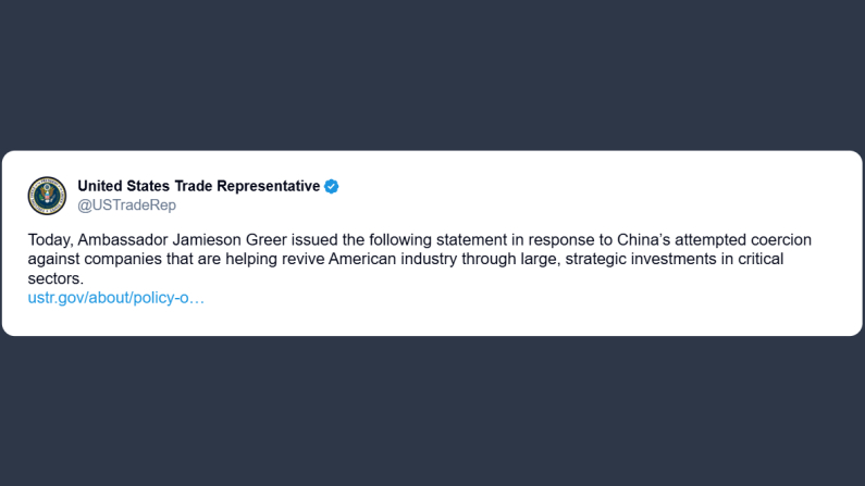 Greer: i tentativi di intimidazione della Cina non fermeranno gli Usa