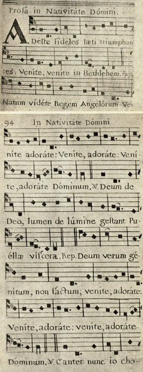 Il più antico manoscritto esistente di Adeste Fideles, attribuito John Francis Wade, 1743-44. Pubblico dominio.