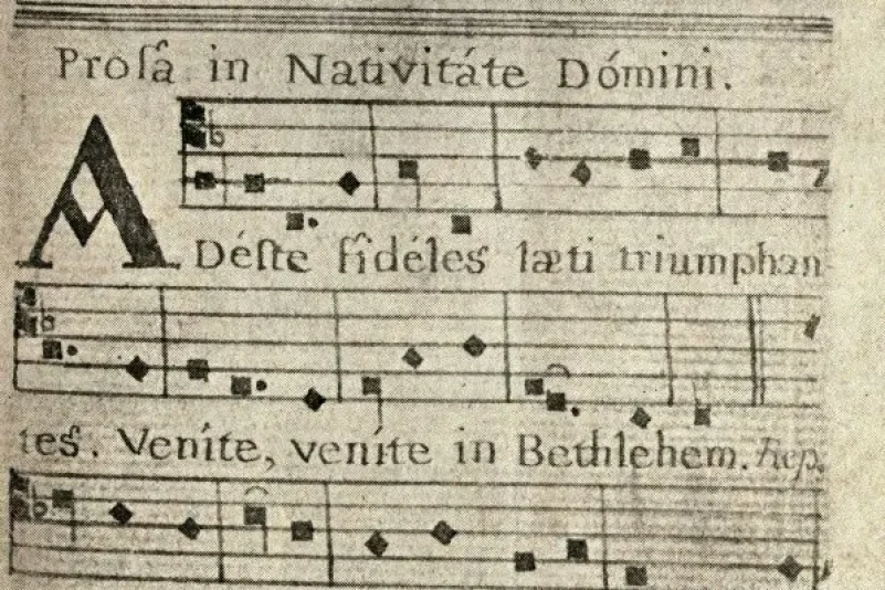 Il più antico manoscritto esistente di “Adeste Fideles”, attribuito a John Francis Wade 1743-44. Pubblico dominio