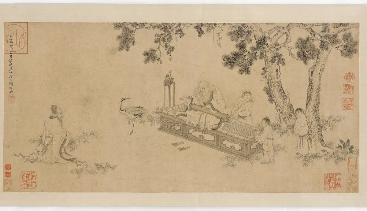 Lao Tzu consegna il Tao Te Ching, XVI secolo, di un artista della dinastia Ming. Scorrimento delle mani, inchiostro su carta. Freer Gallery of Art, Washington. Pubblico dominio
