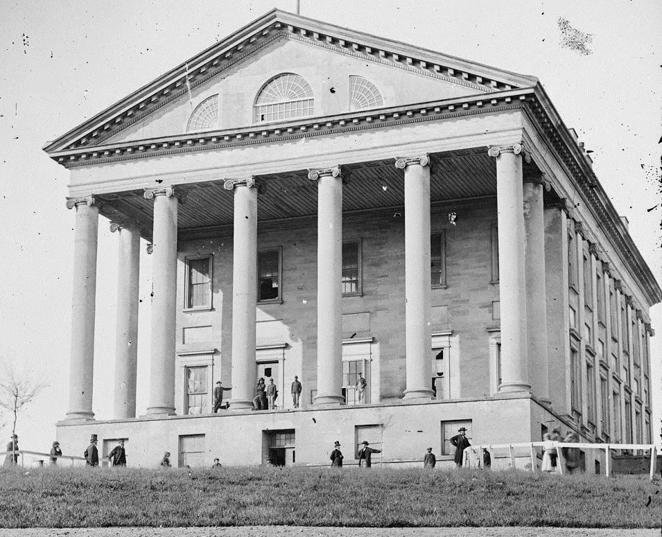 Il Campidoglio dello Stato della Virginia nel 1865 circa. Divisione stampe e disegni della Biblioteca del Congresso. Pubblico dominio