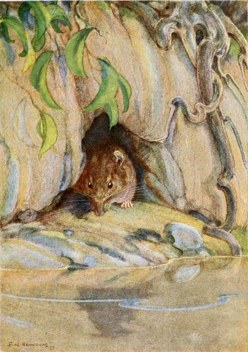 Topo vive vicino al fiume, illustrazione tratta dall’edizione del 1913 di Il vento tra i salici. Pubblico dominio