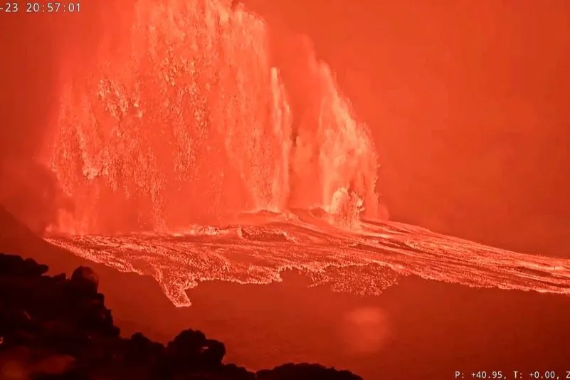 Il vulcano Kīlauea ha dato vita a un’eruzione spettacolare con getti di lava alti circa 30 metri, visibili dalle telecamere in diretta del United States Geological Survey (USGS).