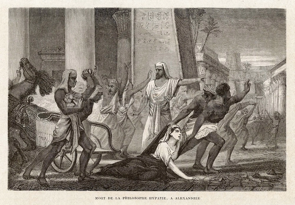 Morte della filosofa Ipazia, tratta da Vite di illustri studiosi di Louis Figuier, 1866. Di pubblico dominio.