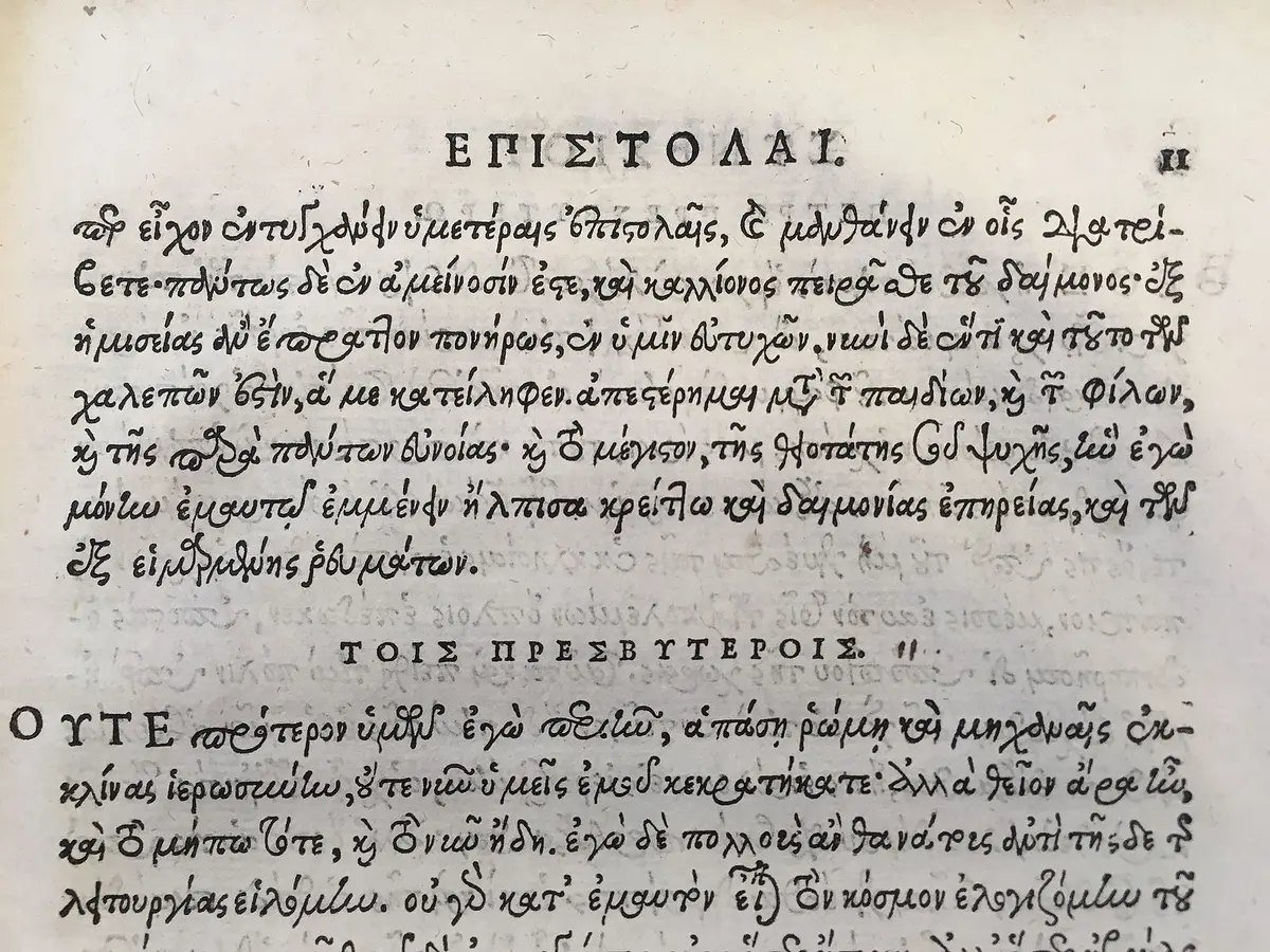 Lettera di Sinesio a Ipazia. Le lettere sono conservate nell’originale greco e ristampate per il pubblico nel XVI secolo. Pubblico dominio