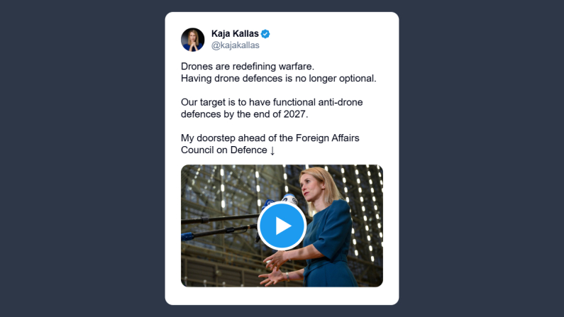 Kallas: i droni sono una rivoluzione di guerra La difesa antidroni è una necessità