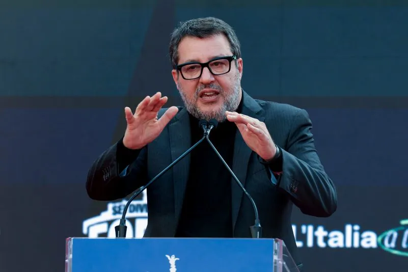 Il ministro delle Infrastrutture, Matteo Salvini, in un comizio al festival di Fratelli d'Italia, Atreju, il 14 dicembre 2025