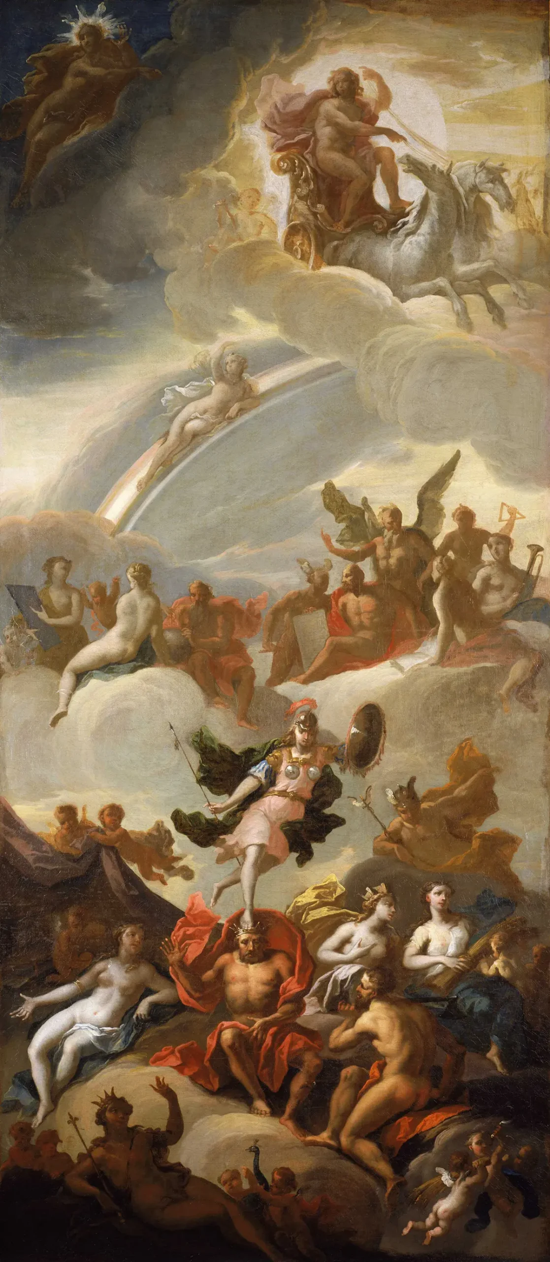 James Thornhill, Allegoria di Apollo e Minerva (Atena) come saggezza e arti, fine XVII – inizio XVIII secolo. Royal Museums Greenwich, Londra. Pubblico dominio.