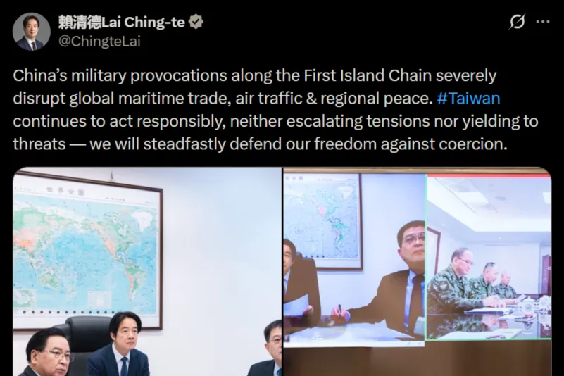 Il presidente della Repubblica di Cina di Taiwan Lai Ching-te ha scritto su X: «le provocazioni militari della Cina lungo la prima catena di Isole stanno compromettendo gravemente il commercio marittimo internazionale, il traffico aereo e la pace regionale. Taiwan continua ad agire responsabilmente, senza aumentare le tensioni né cedere alle minacce, difenderemo con fermezza la nostra libertà dalla coercizione».