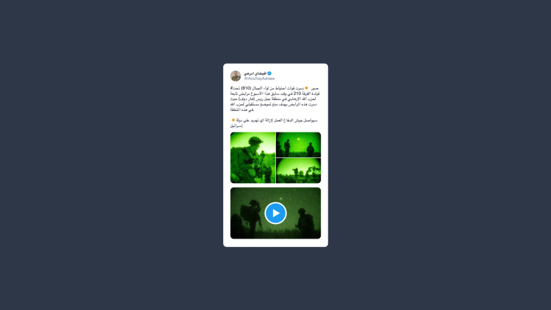 Secondo quanto riportato da Avichay Adraee, portavoce dell’IDF per i media arabi, l’esercito israeliano continuerà a operare per eliminare qualsiasi minaccia allo Stato di Israele.