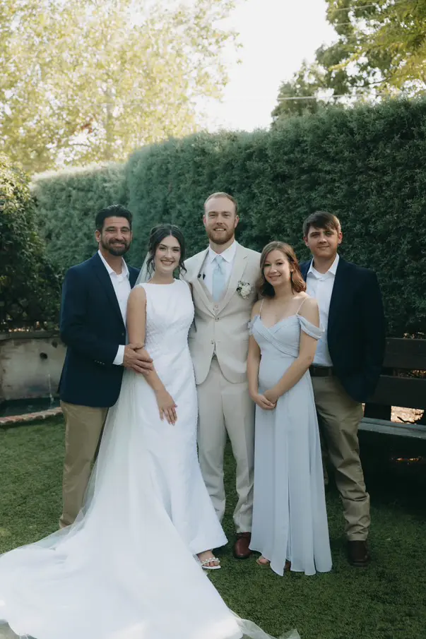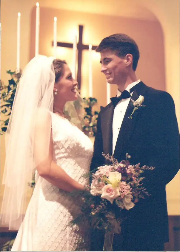 I genitori di Annie, Carly e Chad Mixon, nel giorno del loro matrimonio. Per gentile concessione di Grace Means