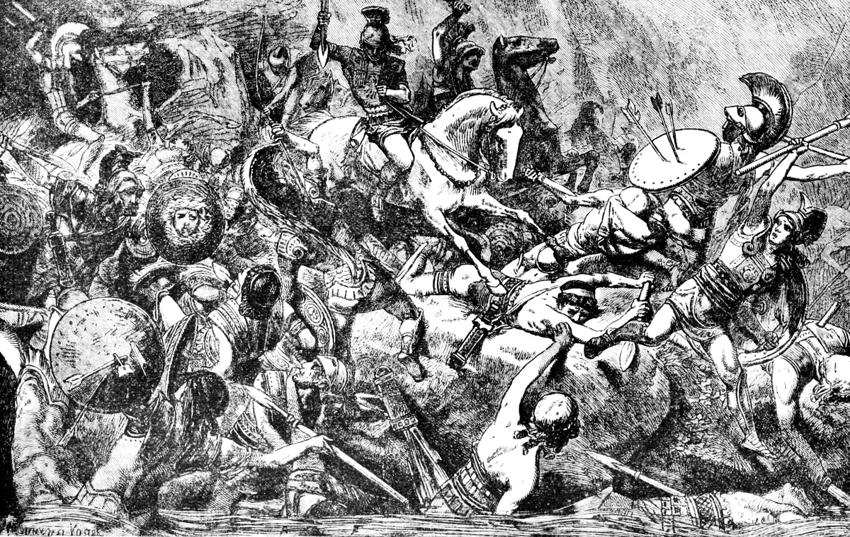 J.G. Vogt, Illustrazione de’ La caduta dell’esercito ateniese in Sicilia durante la Guerra del Peloponneso del 413 a.C., 1893. Pubblico dominio