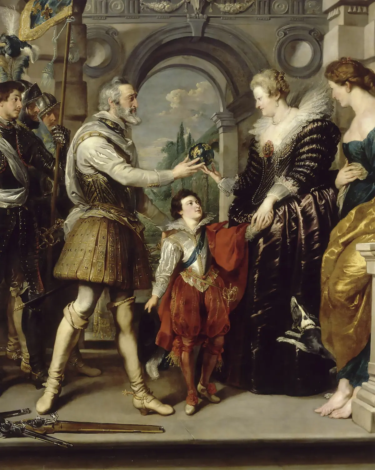 Peter Paul Rubens, Particolare de’ L’incontro di Maria de’ Medici ed Enrico IV a Lione dal ciclo Maria de’ Medici. Museo del Louvre, Parigi. Pubblico dominio