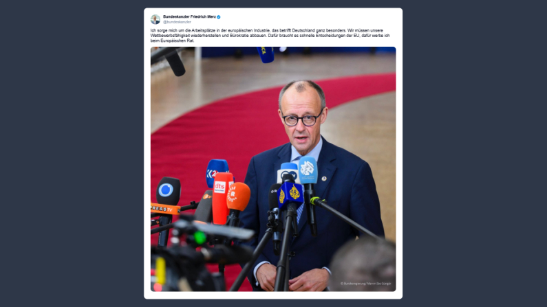 Il primo ministro tedesco, Friedrich Merz, ha scritto oggi su X: «Sono preoccupato per i posti di lavoro nell’industria europea, soprattutto in Germania. Dobbiamo ripristinare la nostra competitività e ridurre la burocrazia. Servono decisioni rapide da parte dell’Unione Europea, e per questo mi sto impegnando al Consiglio Europeo».