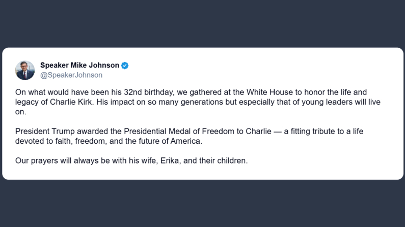 Mike Johnson: Trump ha conferito a Charlie la Medaglia presidenziale della libertà