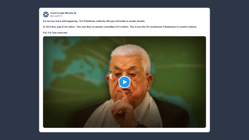 Il ministero degli Esteri israeliano ha scritto su X: «non è una novità, ma continua. L’Autorità palestinese continua a pagare i terroristi perché uccidano israeliani. Nel 2024 ha versato 144 milioni di dollari. Quest’anno ha già stanziato 214 milioni. È così che l’Ap incentiva i palestinesi a compiere attentati. Il “paga per uccidere” deve finire».