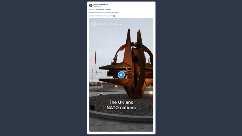 Il ministero della Difesa del Regno Unito ha scritto su X: «Se la Nato è minacciata, agiremo. L’escalation di Vladimir Putin deve essere affrontata con forza»