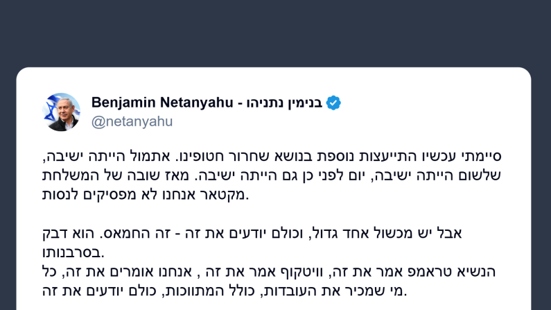 Netanyahu: Hamas ostacola la liberazione degli ostaggi ma non ci arrendiamo