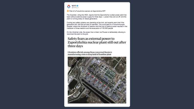 Nexta: a Zaporizhzhia si rischia lo stesso disastro nucleare di Fukushima
