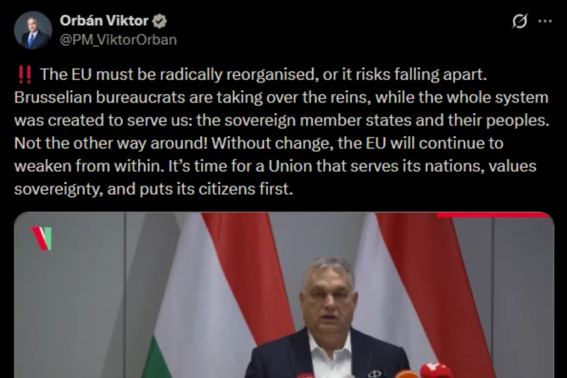 Il primo ministro dell’Ungheria Orbán Viktor ha scritto su X: «l’Ue deve essere radicalmente riorganizzata, altrimenti rischia di sgretolarsi. I burocrati di Bruxelles stanno prendendo il controllo, mentre l’intero sistema è stato creato per servire noi: gli Stati membri sovrani e i loro popoli. Non il contrario. Senza cambiamenti, l’Ue continuerà a indebolirsi dall’interno. È tempo di un’Unione che serva le sue nazioni, valorizzi la sovranità e metta i suoi cittadini al primo posto».