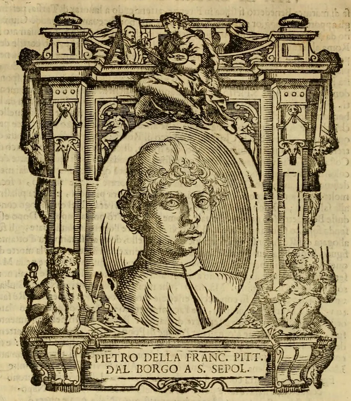 Giorgio Vasari, Illustrazione di Piero della Francesca da Vite de’ più eccellenti pittori, scultori e architetti, 1648, Internet Archive. Pubblico dominio