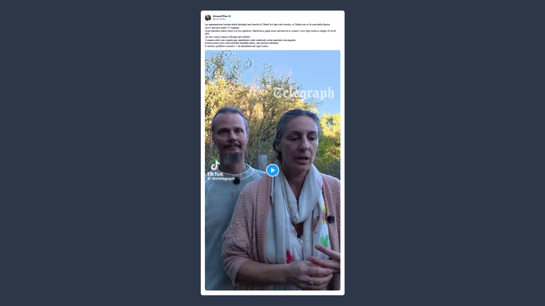 Simone Pillon, ex senatore della Lega e cofondatore Family Day, ha scritto su X: «la separazione forzata della famiglia nei boschi di Chieti fa il giro del mondo, e l’Italia non ci fa una bella figura. Qui il servizio della Tv inglese. Quei bambini erano felici coi loro genitori. Mamma e papà sono amorevoli e curano i loro figli come e meglio di molti altri. La loro unica colpa è rifiutare gli schemi.