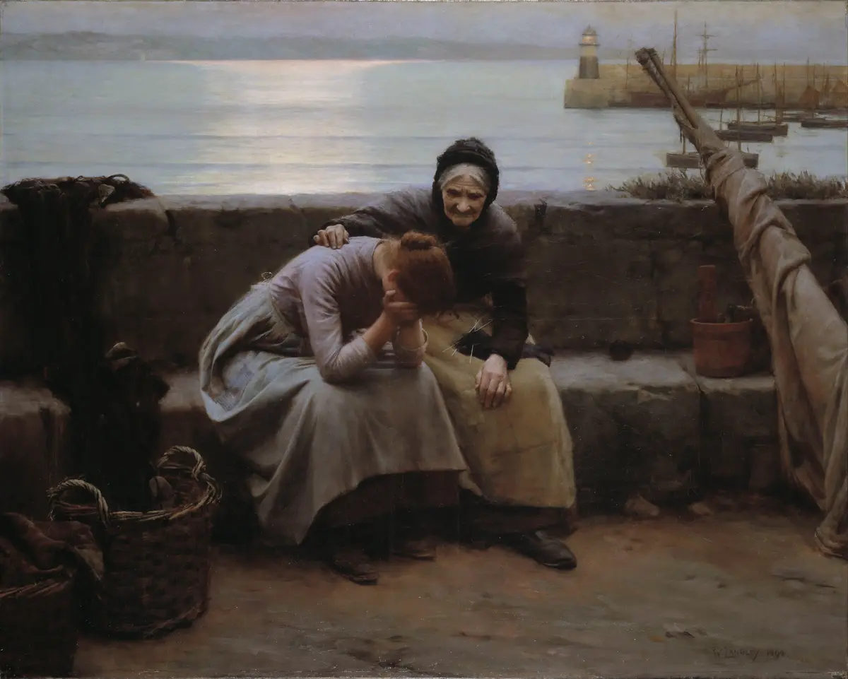 Walter Langley, Mai il mattino si è fatto sera, senza qualche cuore si spezzasse, 1894. La poesia può aiutarci a ricordare che invecchiando possiamo acquisire compassione. Museo e Galleria d’arte di Birmingham, Inghilterra. Pubblico dominio