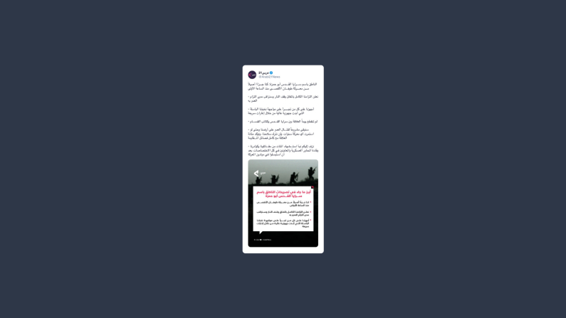 Il portavoce ha inoltre annunciato che l’organizzazione terroristica aderirà pienamente all’accordo di cessate il fuoco in vigore, ma vigilerà attentamente sul comportamento del nemico per assicurarsi che anche Israele rispetti gli impegni presi. Abu Hamza ha poi ribadito che i rapporti tra le Saraya al-Quds e le Brigate al-Qassam, braccio militare di Hamas, «non sono mai stati interrotti», e che la cooperazione tra le varie fazioni della resistenza palestinese resta solida e strategica.