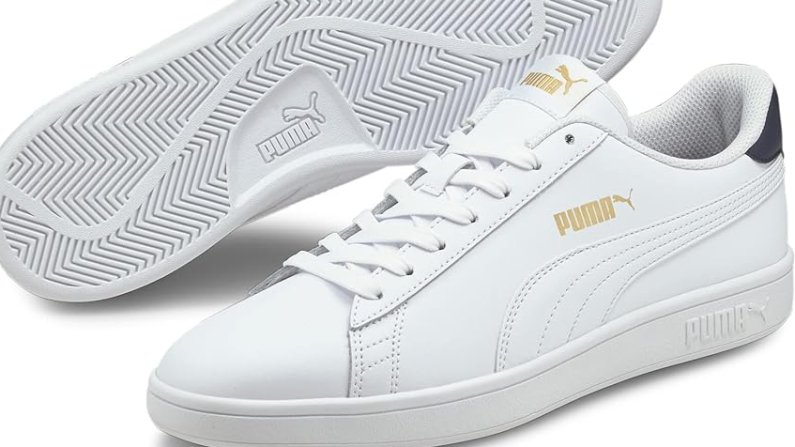 Puma Smash v2, le sneakers unisex che da anni sono la risposta più semplice alla domanda «che scarpe metto oggi?». Linea pulitissima ispirata al tennis anni ’70, tomaia in pelle, classico logo Formstrip cucito sul fianco, suola in gomma spessa anti-scivolo che tiene su tutto: asfalto bagnato, pavimenti della palestra, persino terra battuta e una soletta interna che coccola il piede per ore.