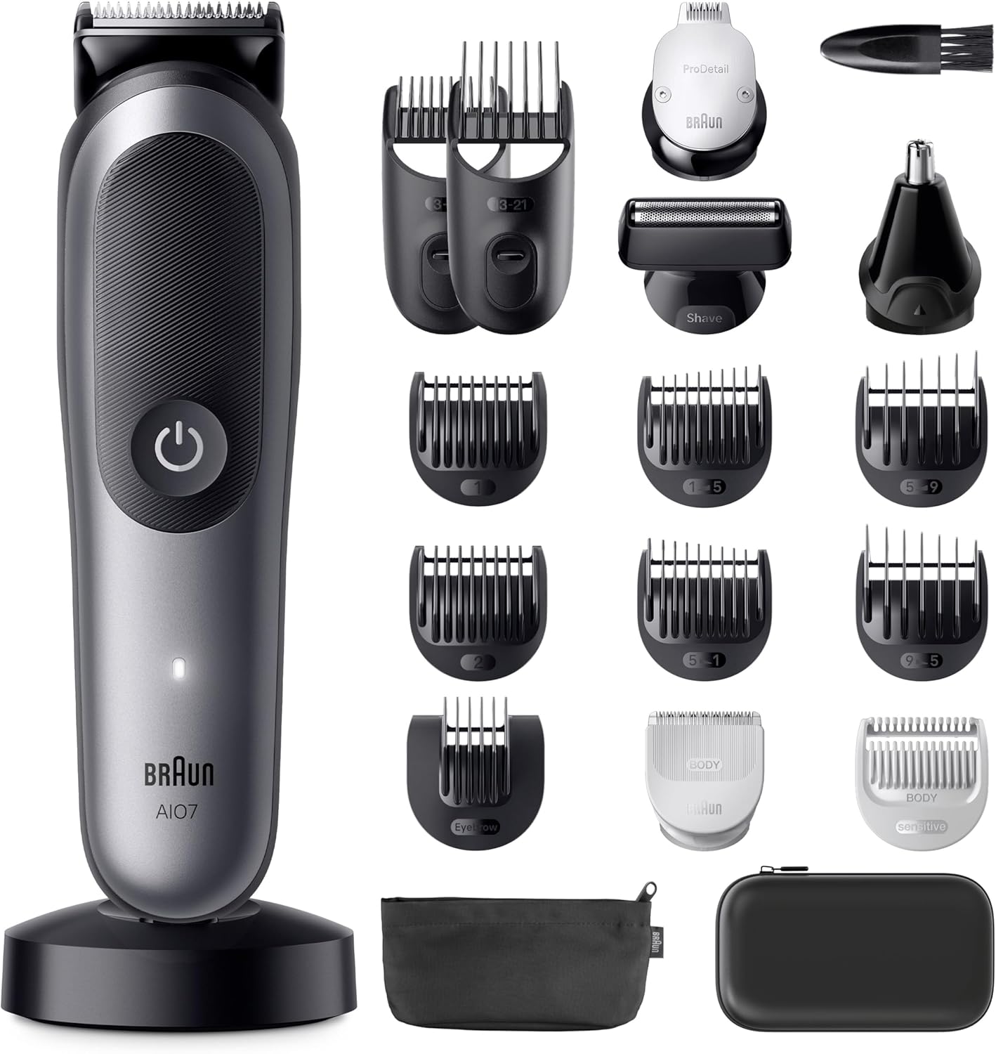 Il rifinitore Braun All-in-One Series 7 si conferma uno dei kit multifunzione più versatili e affidabili per la cura maschile, ideale per uno styling completo dalla testa ai piedi nella fascia di prezzo medio-alta del mercato. Equipaggiato con ben 18 accessori dedicati, tra cui pettini regolabili e testine specializzate, questo rasoio elettrico offre una rifinitura precisa per barba, capelli, naso, orecchie e corpo. La lama ProBlade, ultra-affilata e resistente all’usura, garantisce tagli netti e uniformi, mentre la tecnologia AutoSense adatta automaticamente la potenza del motore alla densità dei peli per un’efficienza ottimale in ogni sessione. La testina PrecisionShave, con 14 impostazioni di lunghezza da 3 a 21 mm, permette di ottenere linee definite e rasature pulite senza irritazioni. Particolarmente indicata per pelli sensibili, la tecnologia SkinGuard minimizza il contatto diretto con la pelle, riducendo arrossamenti e fastidi anche nelle zone più delicate, come le parti intime. Completamente impermeabile (IPX7) con impugnatura AquaGrip antiscivolo, è utilizzabile sotto la doccia per una maggiore praticità. L’autonomia della batteria Li-Ion raggiunge i 120 minuti di funzionamento continuo, con una ricarica completa in circa 1 ora.Rifinitore Braun All-in-One Series 7 acquistabile qui: https://amzn.to/3MnDBgT
