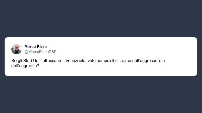 Il presidente di Democrazia Sovrana Popolare, Marco Rizzo, ha scritto su X: «Se gli Stati Uniti attaccano il Venezuela, vale sempre il discorso dell’aggressore e dell’aggredito?».