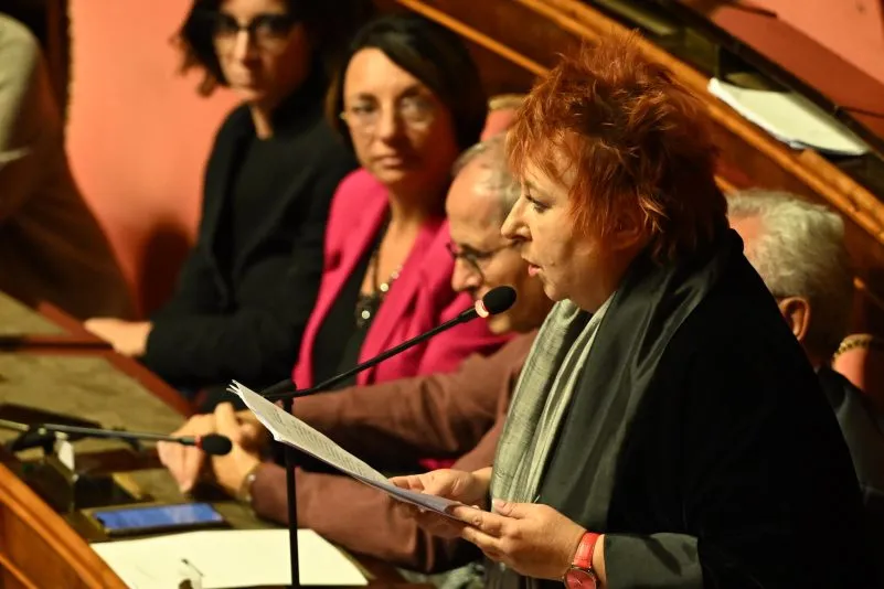 L'intervento di Tatjana Rojc, nel corso delle dichiarazioni di voto ai ddl per la conoscenza delle foibe al Senato, Roma 3 ottobre 2023. ANSA/MAURIZIO BRAMBATTI