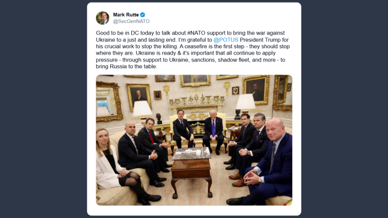 Il segretario generale della Nato, Mark Rutte, ha scritto su X: «è un piacere essere oggi a Washington per discutere del sostegno della Nato per porre fine in modo giusto e duraturo alla guerra contro l’Ucraina. Sono grato al presidente Donald Trump per il suo ruolo cruciale nel fermare le ostilità. Un cessate il fuoco è il primo passo, le parti devono fermarsi dove si trovano».