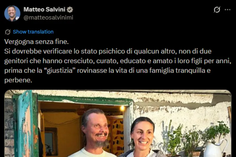 Il vicepremier e ministro delle Infrastrutture e dei Trasporti Matteo Salvini ha scritto su X: «vergogna senza fine. Si dovrebbe verificare lo stato psichico di qualcun altro, non di due genitori che hanno cresciuto, curato, educato e amato i loro figli per anni, prima che la “giustizia” rovinasse la vita di una famiglia tranquilla e per bene».