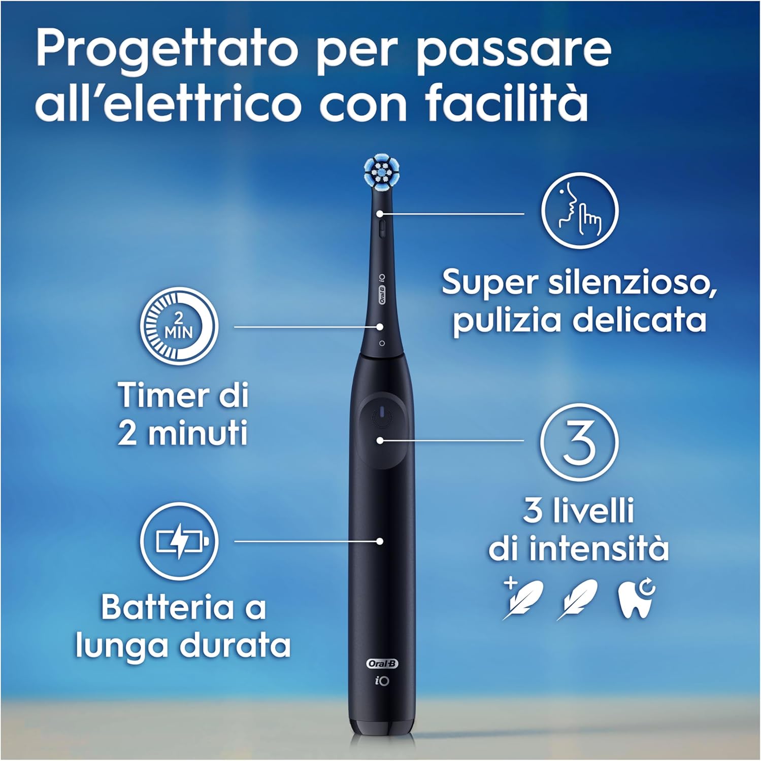 Oral-B iO 2 rappresenta attualmente il modo più accessibile e completo per entrare nel mondo della tecnologia magnetica iO, la stessa montata sui modelli di fascia alta che costano tre o quattro volte tanto. Combina la testina rotonda professionale con micro-vibrazioni delicate, sensore di pressione intelligente (rallenta automaticamente e accende luce rossa se spingi troppo), timer professionale da 2 minuti con avviso ogni 30 secondi e 3 modalità di spazzolamento silenziose. La batteria ha una durata reale di oltre 2 settimane con una sola carica e il bundle include custodia da viaggio, supporto per testine e un dentifricio Oral-B Pro Expert.Oral-B iO 2 acquistabile qui: https://amzn.to/4q2j4gB