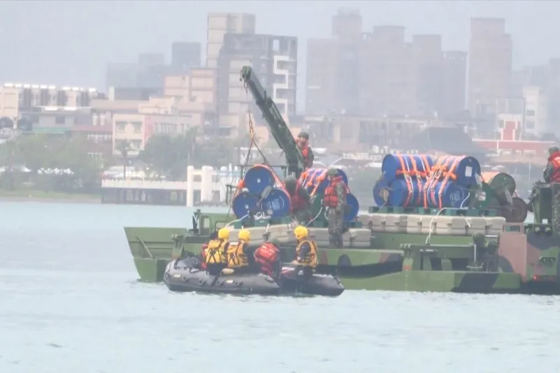 L’esercito di Taiwan ha posizionato barili esplosivi in una foce a nord di Taipei come parte di esercitazioni di emergenza in risposta alle manovre cinesi “Justice Mission 2025”