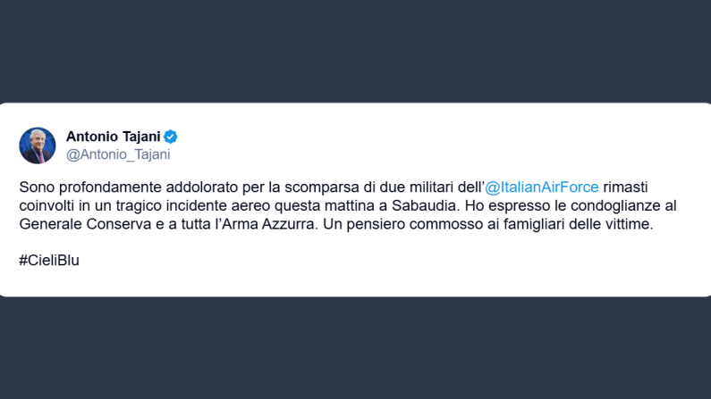 Tajani: cordoglio all’italian Air Force
