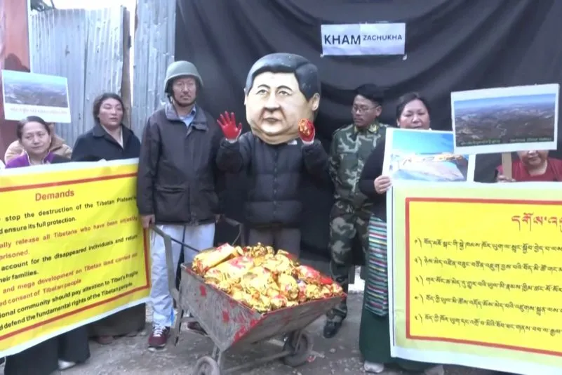 I manifestanti hanno chiesto il rilascio dei tibetani locali che sono stati arrestati arbitrariamente dalle autorità cinesi per aver protestato contro le operazioni di estrazione.