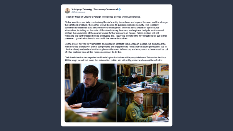 Il presidente ucraino Volodymyr Zelensky ha dichiarato, citando su X la relazione del capo del Servizio di intelligence estera dell’Ucraina, Oleh Ivashchenko: