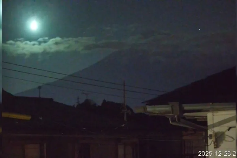 Le immagini delle telecamere a circuito chiuso del Museo della città di Hiratsuka, in Giappone, hanno ripreso una palla di fuoco che ha illuminato il cielo notturno venerdì 26 dicembre, schiarendo le nuvole con il Monte Fuji visibile sullo sfondo.