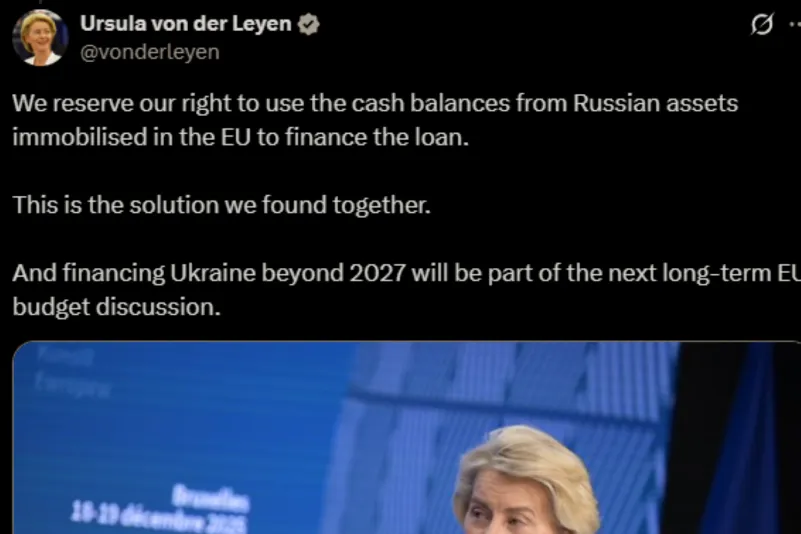 Il presidente della Commissione europea Ursula von der Leyen ha scritto su X: «ci riserviamo il diritto di utilizzare la liquidità disponibile derivante dagli asset russi immobilizzati nell’Ue per finanziare il prestito. Questa è la soluzione che abbiamo trovato insieme. E il finanziamento dell’Ucraina oltre il 2027 sarà parte della prossima discussione sul bilancio a lungo termine dell’Ue».