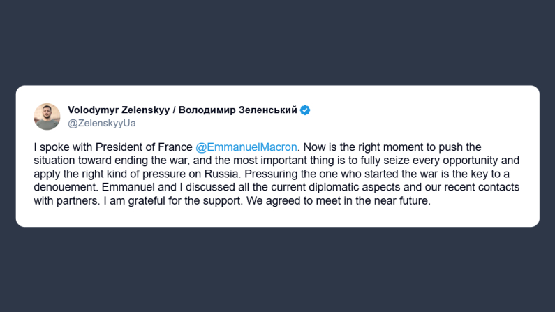 «Fare pressione – conclude Zelensky – su chi ha iniziato il conflitto è la chiave per una soluzione. Emmanuel e io abbiamo discusso tutti gli aspetti diplomatici attuali e i nostri recenti contatti con gli alleati. Sono grato per il sostegno. Abbiamo concordato di incontrarci a breve».