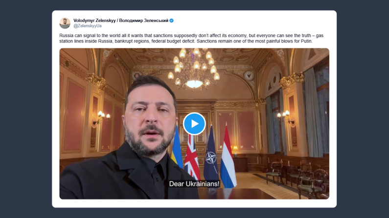 Il presidente ucraino Volodymyr Zelensky ha dichiarato ieri su X: «la Russia può proclamare al mondo quanto vuole che le sanzioni non abbiano impatto sulla sua economia, ma la verità è sotto gli occhi di tutti. Code alle stazioni di servizio, regioni in bancarotta, deficit nel bilancio federale. Le sanzioni restano uno dei colpi più duri per Vladimir Putin».
