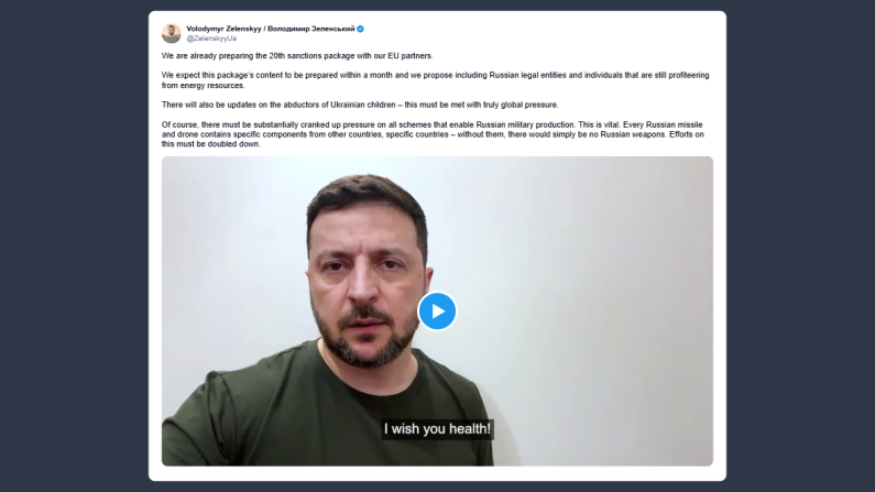 Zelensky: stiamo preparando il 20º pacchetto di sanzioni